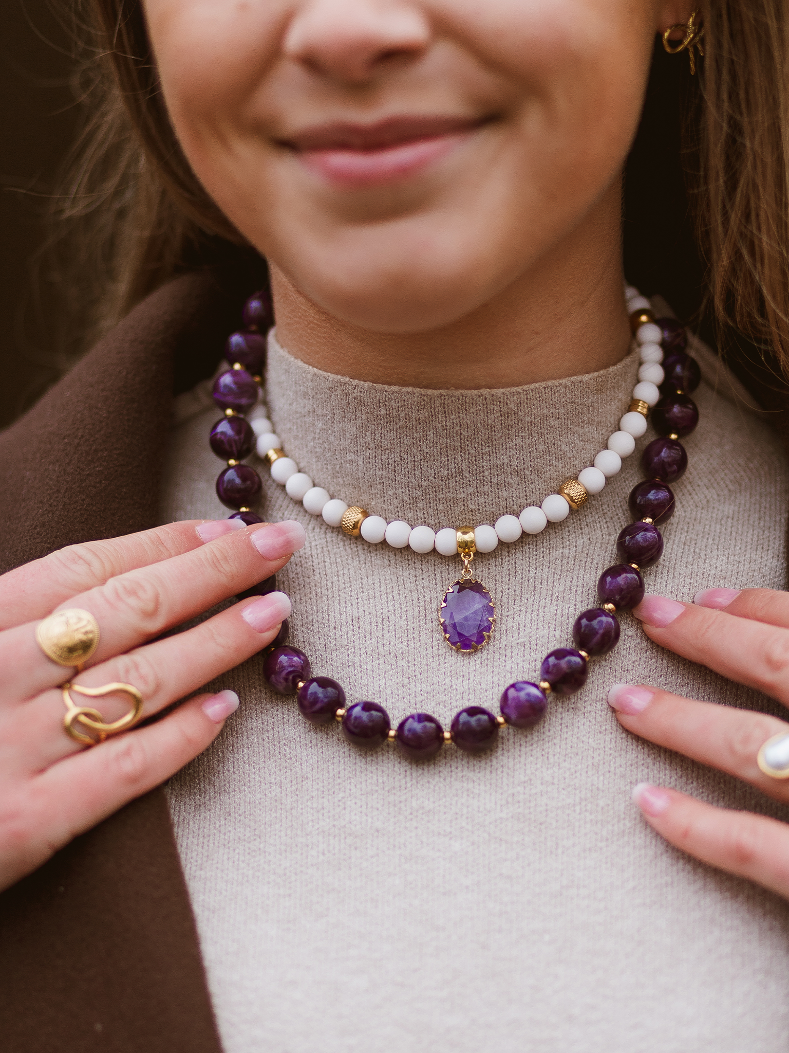 FW'COLLECTION | Maak jouw look onweerstaanbaar met deze trendy paarse parelketting. Uniek van uitstraling en perfect te combineren met één van onze andere kettingen voor een stijlvolle, gelaagde look.